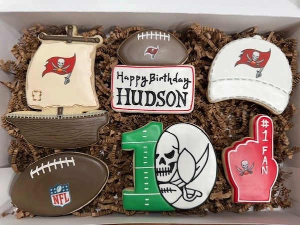 Our most popular vanilla sugar cookie base or one of dozens of other flavor options available upon request, decorated with royal icing.